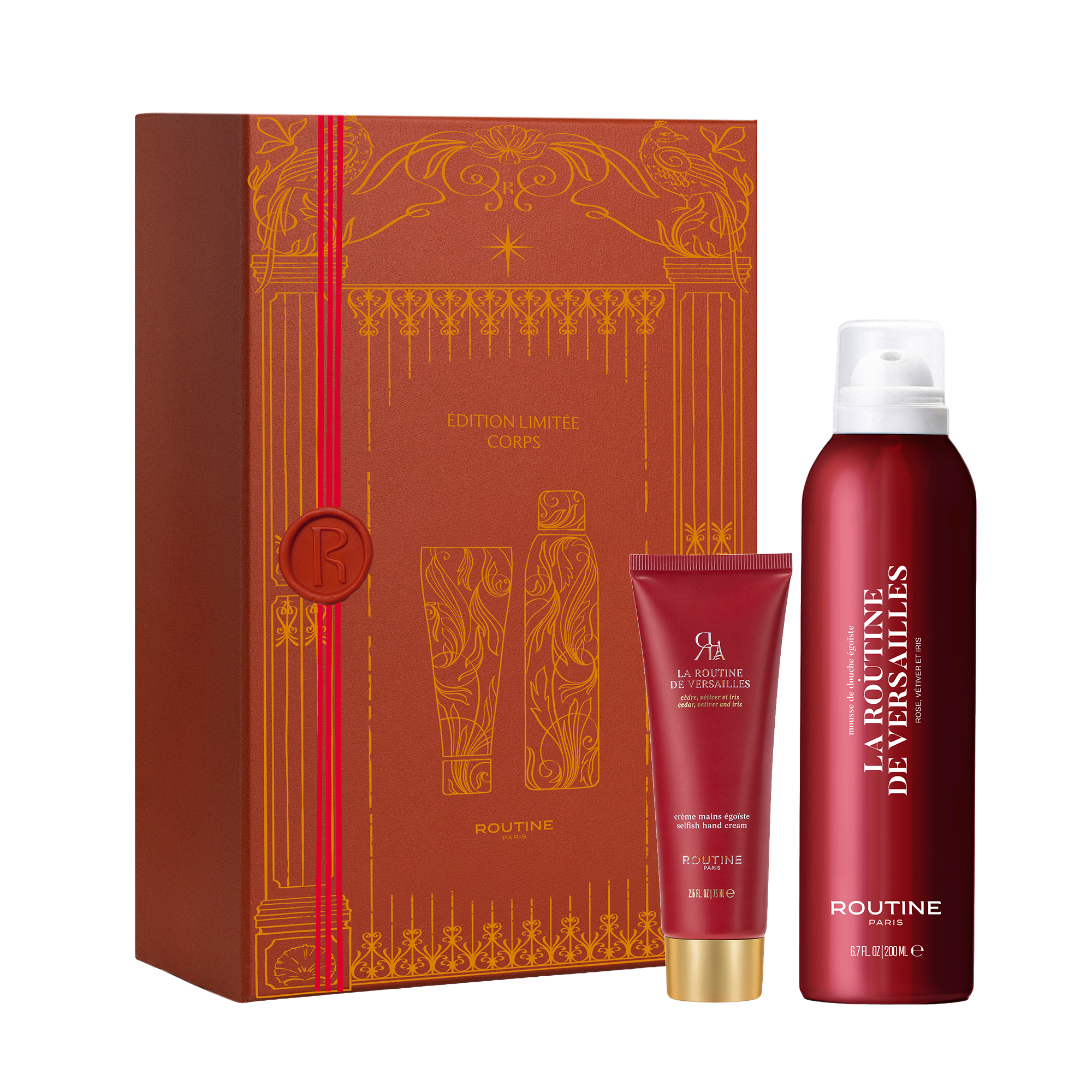 Intrați în măreția Versaillesului, unde eleganța se îmbină cu voluptatea într-o simfonie olfactivă regală. LA ROUTINE DE VERSAILLES se transformă într-o spumă somptuoasă, care mângâie pielea cu o catifelare mătăsoasă. Un amestec radiant de coacăze negre, mere și piersici deschide parfumul cu o notă de decadență regală, în timp ce irisul, iasomia și trandafirul evocă romantismul atemporal al grădinilor palatului. Ancorat în căldura ambrei, vetiverului și pralinului, acest ritual rafinat este o odă adusă opulenței, invitându-vă să vă cufundați în arta luxului à la française.